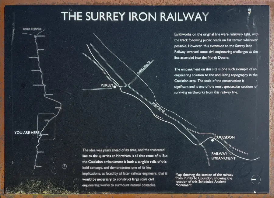 This concerns a set of information boards covering the famous iron railway in north Surrey. These boards are pretty new and were put up possibly summer of 2024, although there is nothing to indicate exactly when they were installed. It is commendable that an attempt to at least regale the history of the Surrey, and the Croydon, Merstham and Godstone, Iron Railways has been made, especially as information boards seem to disappear quite quickly. These new boards are mounted on iron plinths and are intended to be sturdy.