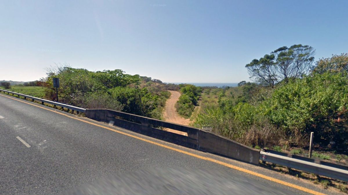 Bridge on the R61 near Izotsha Memorial park with the coast clearly evident. Google Streets.