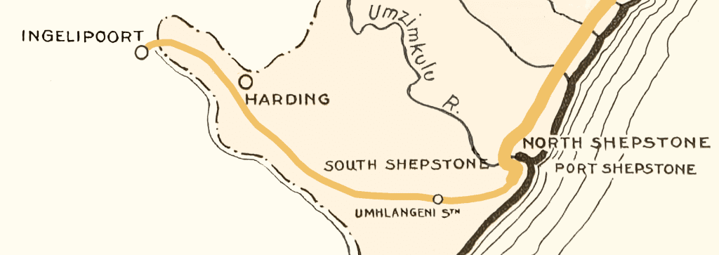 The route between Port Shepstone and Ingeli Poort. Umhlangeni is a name that’s no longer extant. Map based on an old one produced by Natal Railways.