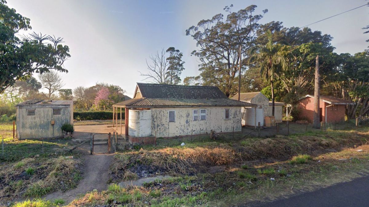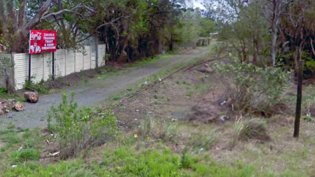 Nyandezulu. This panorama is merged from two separate views. Remains of the track can be seen crossing from left to right. To the left the line leads to the coast. To the right the line leads up the valley towards Hell Gate in the direction of Bomela. Google Streets. In the most recent 2023 scenes a house has now been built upon part of the alignment even though rails are still extant. Clearly no-one expects a railway to run here anymore!