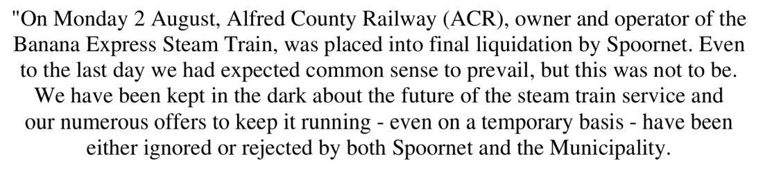 When the line was taken over by private enterprise (this being a mix of enthusiasts and entrepreneurs – ironically Spoornet had a partial interest too) it was clearly a successful operation. Its a shame the odds were against its continuation. Twitter/X.