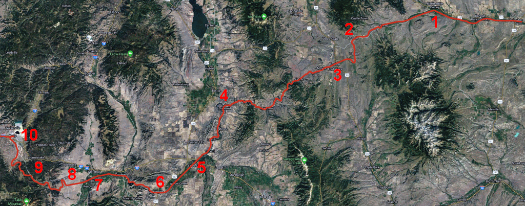 I gave it a go and shown above is the map I compiled (based on Google of course) showing the complete 440 miles of formerly electrified Milwaukee Road as it works its way through Southern Montana and into eastern Idaho. Even this large map doesn’t do the line justice because there are far more twists and turns in the route than can be shown here!