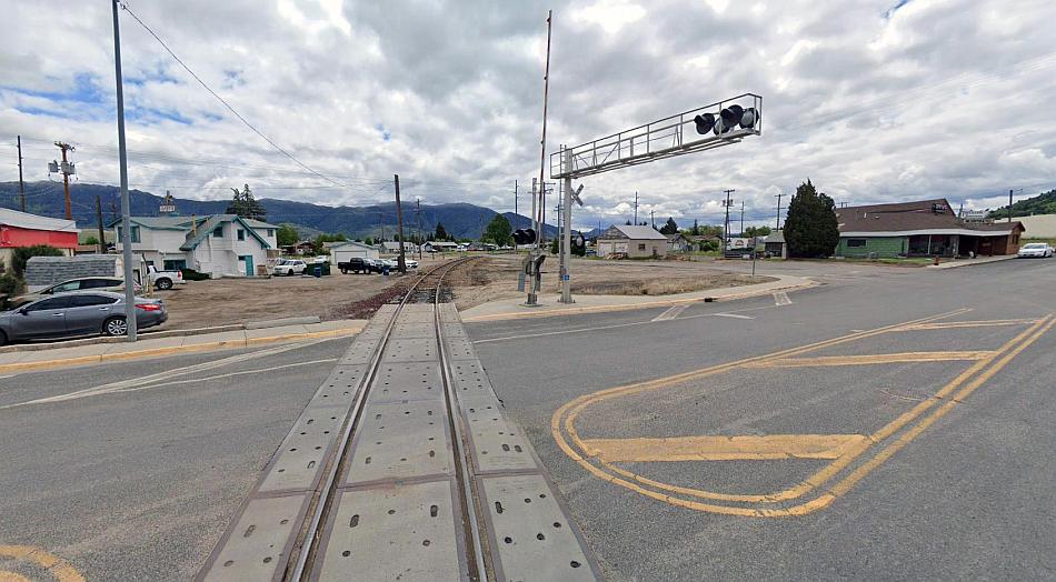 South Montana Street in Butte. (marked on the map where Freeway Tavern is shown.) This part of the Milwaukee Road is still rail served to a depot on the south side of the city. The line curves to the west as if to avoid the city altogether – but that’s for a reason, so it can both serve the city and the route westwards. Google Streets.
