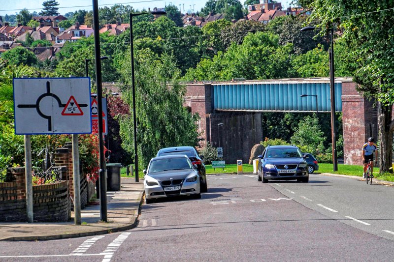 The Waterfall Road overbridge (number 35) as seen from further up the hill towards Southgate Green.