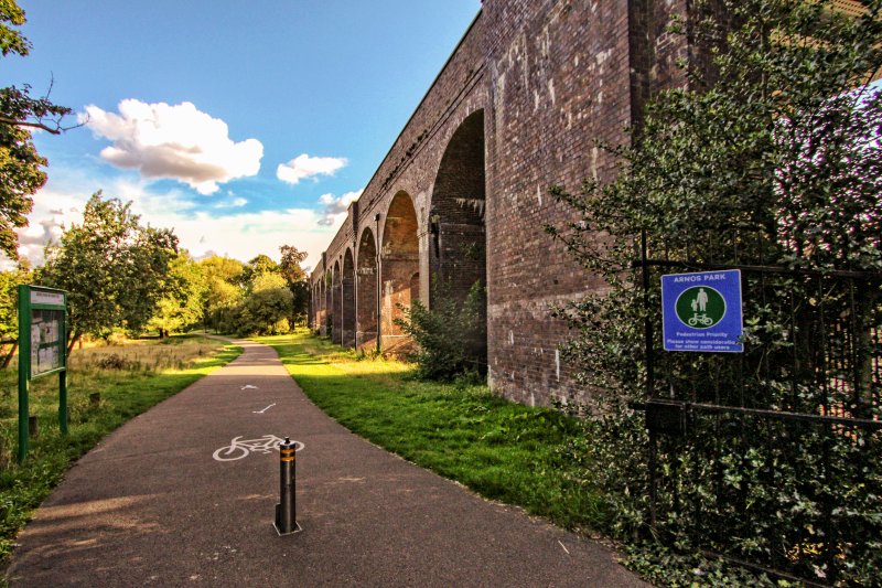 One problem is the name of the viaduct itself. As ‘Arnos Park viaduct’ it seems most ignore the bits outside the park. There’s another bit of park beyond the 34 arches across Waterfall Way with more arches. This is a section of parkland known as Waterfall Walk alongside the Pymmes Brook.