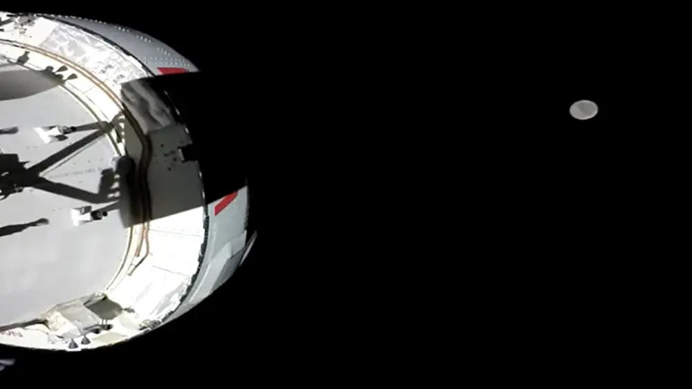 The Integrity spacecraft is currently 207,000 miles counting away from earth, and 73,000 miles away from the moon. This means of course we are getting closer and closer to our lunar flyby, which happens on flight day six. We actually have a countdown on in here because on flight day six, the crew also passes the Apollo distance record. So that’s coming up in one day, six hours, four minutes and counting down from there. The lunar flyby is in one day, 5 hours, nine minutes and counting.
