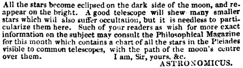The dark side of the moon. Bath Chronicle 14th March 1839.