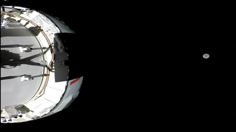 This is MCC we just heard some communication between the crew on board the Orion spacecraft and the CapCom (or Capsule Communicator) here in MCC. They were discussing a recent wastewater dump. The space toilet on board the Orion spacecraft is called the Universal Waste Management System, and as part of this system, the urine is stored in a tank and then vented overboard each day by the crew. A few minutes ago, the crew was completing that overboard venting or that wastewater dump, and it does sound like there was a bit of an issue there. So that’s being troubleshot. But in the meantime, the crew will enter into their sleep period and use the contingency collapse urinals as needed overnight while they continue to troubleshoot the wastewater dump. And currently here in MCC the two flight controllers are starting to wrap up their shift. So the orbit team of three flight controllers is starting to come on console and complete that handover period. The orbit two team has been led by NASA Flight Director Paul Konya, and… CapCom… has been Jackie Mahaffey. Currently the Orion spacecraft is about 148,000 miles away from the earth, and about 126,000 miles away from the moon.