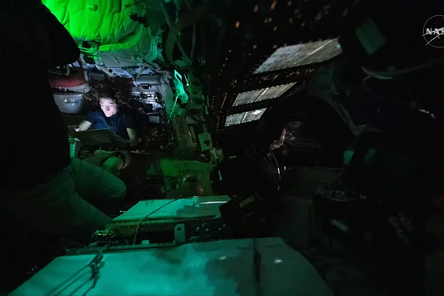 Photo shown at NASA’s update showing the Orion cabin in subdued light. Its so the crew can look out of the window to observe the spheres & stars.