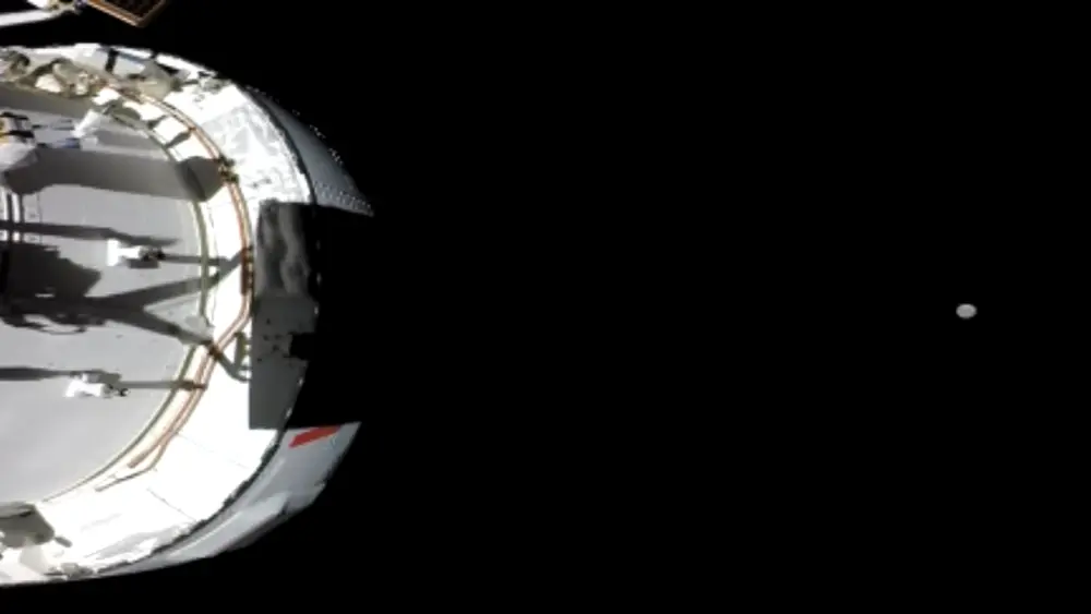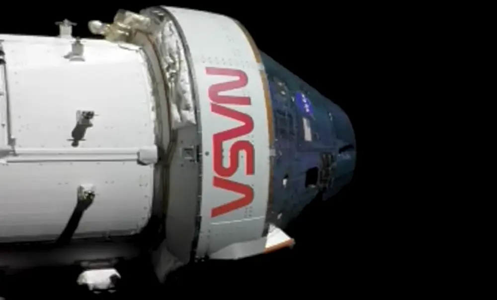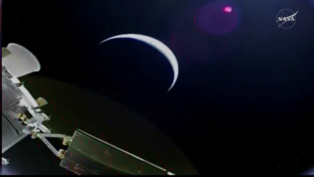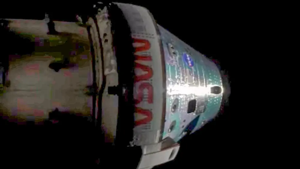 The cameras have just been turned to show the main Orion (aka Integrity) capsule. I lightened up the transmitted image to see how the craft actually looked. But there’s a better picture now coming on the screen and there’s no need to lighten that one!