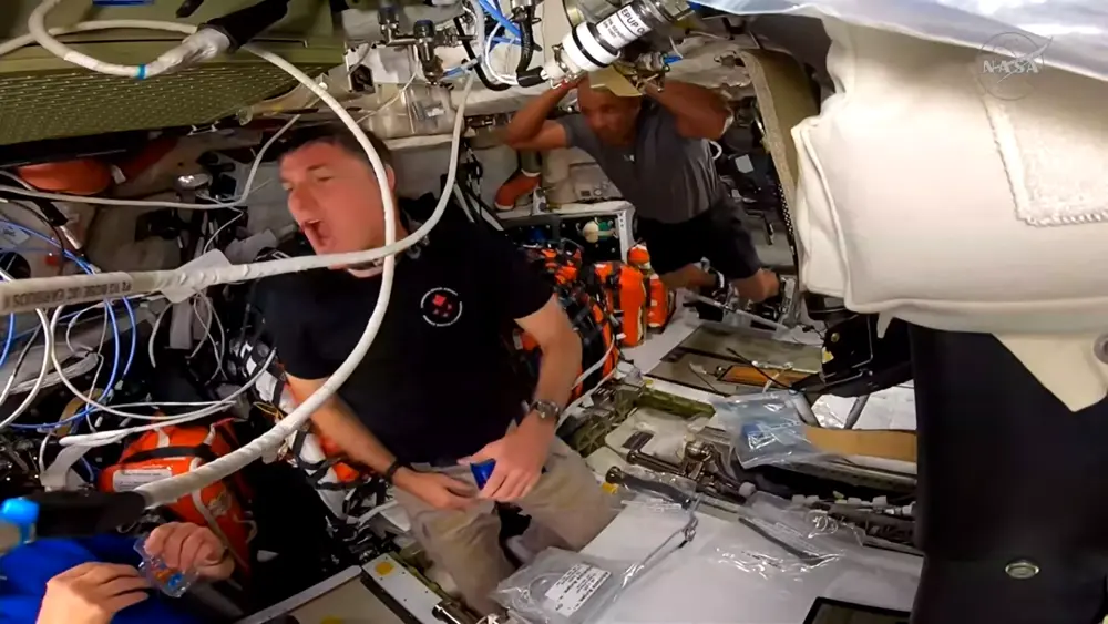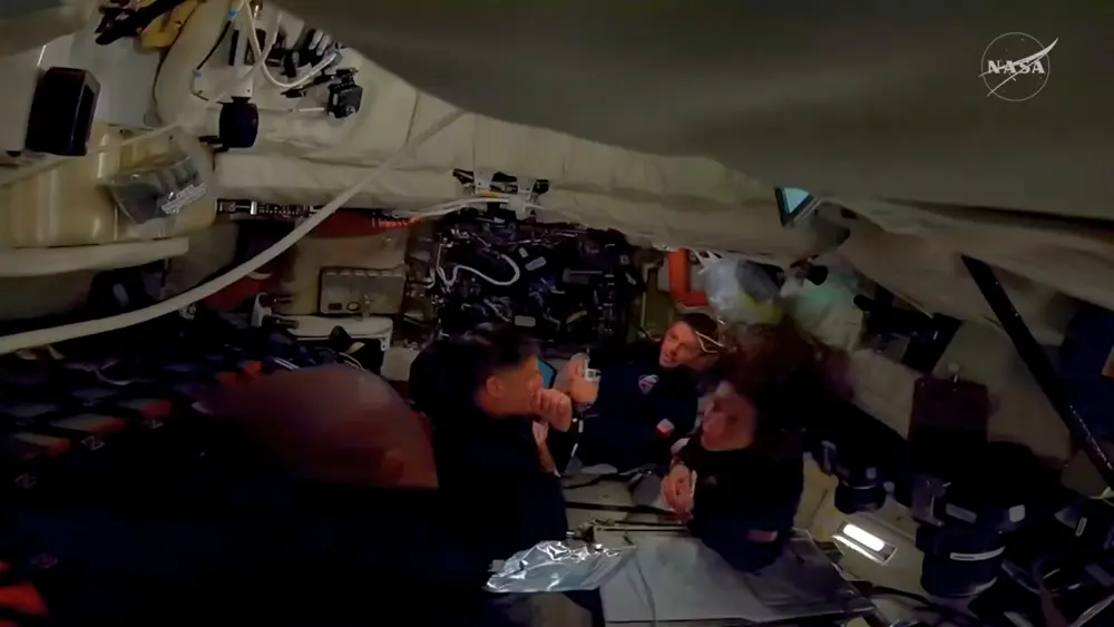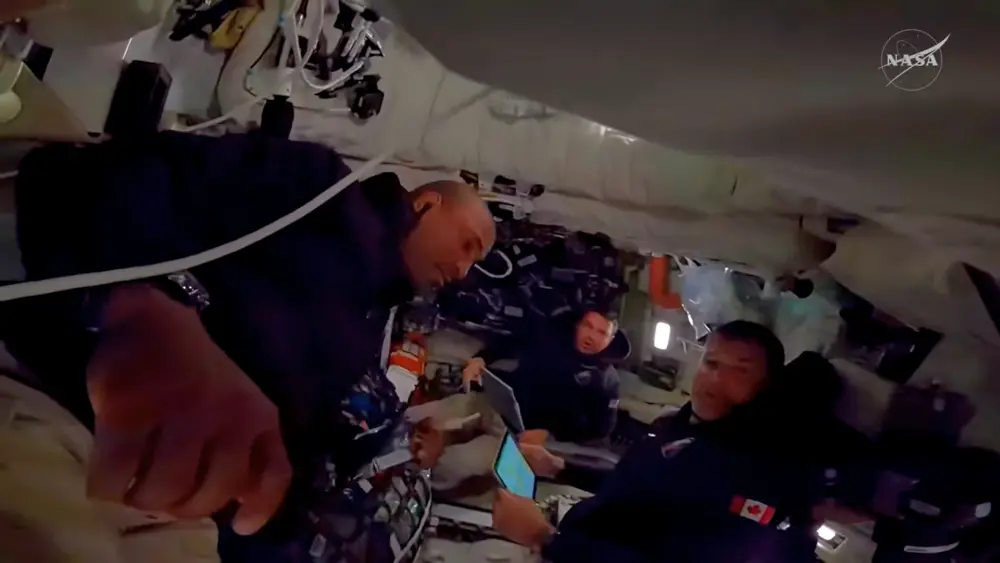 A quick screenshot of the most recent live transmission (approx19.40pm UK time) of the crew just after they had woke up. I missed Christina as she went to the side.