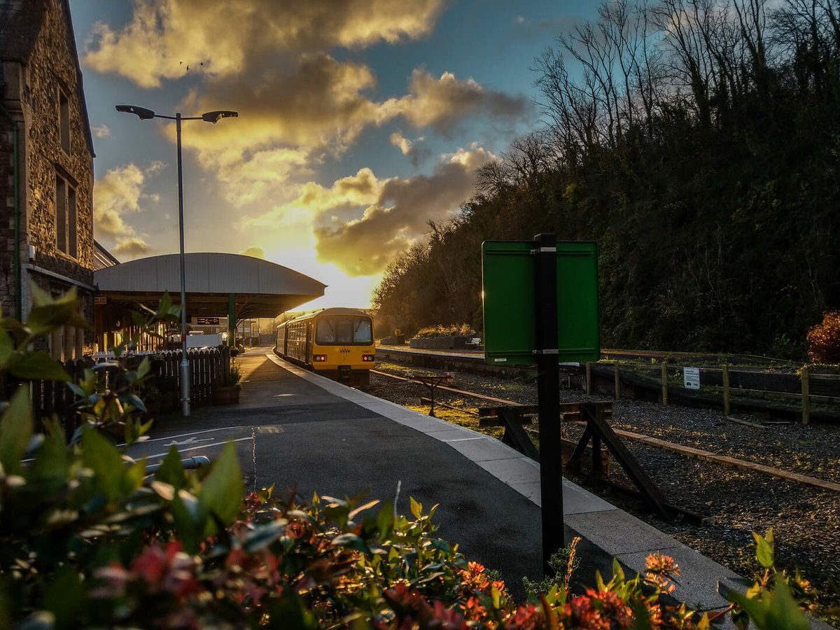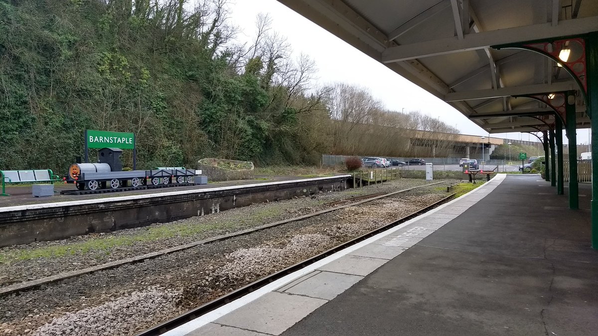 The station as it is today with the gardens and public seating area on the island platform. Formerly the tracks headed straight on for Bideford and right for Ilfracombe. Source: Twitter