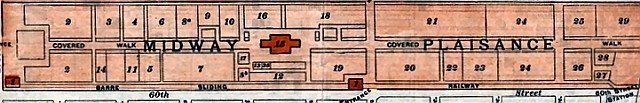 Map of the Midway with Barre’s railway running from Cottage Grove to 60th Street station.