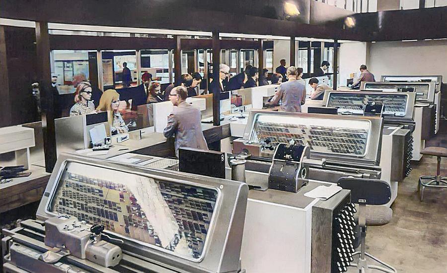 Those great big ticketing machines at the new Euston station in 1968! Its not really a decimalisation image – but rather one to show what those huge machines looked like. Image sourced from Ebay and colourised by the author.