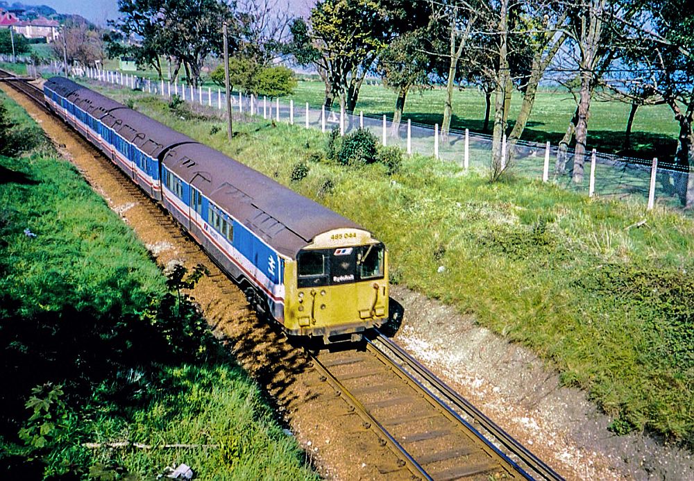 The 485/86 units really worked their armatures hard and one could especially feel these seven car trains muscling their power especially heading south. They certainly had much go whilst the 483s didn’t – and that in large because the 483s couldn’t stomach the track quality on the island. The best place to sit on the 485/486s was of course in the front carriage, right next to the motor compartment and the power dispensed by these units upon leaving either Brading or Lake stations in a southbound direction can be described as stupendous. The weight of the trains meant these would be powered practically almost into Shanklin station itself – from Norton Common (midway between Brading and Sandown) the line is on an almost rising gradient.