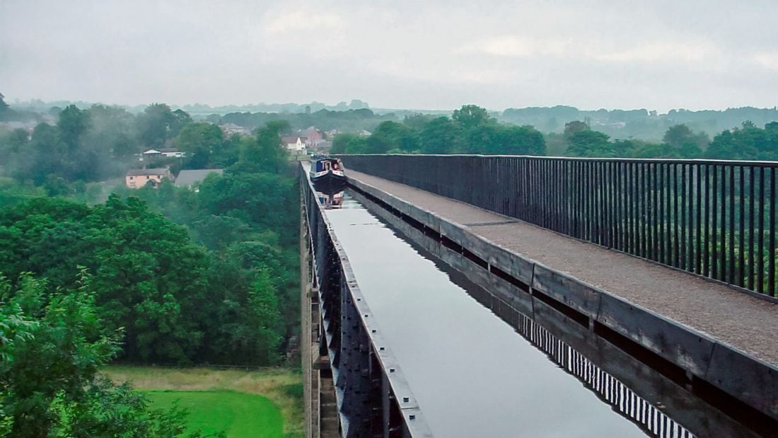 View of the aqueduct taken in 2004 by the author. This, the featured image, is taken from the same position where the narrowboat photos for the AI generated videos were shot – as discussed below. When the canals have so many problems such as breaches and the likes, like the massive breach on the Bridgewater…