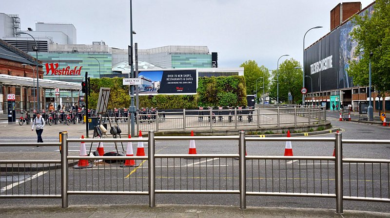 The same spot in Oct 2015. This scene has now disappeared under the Westfield extension! Source: Google maps.