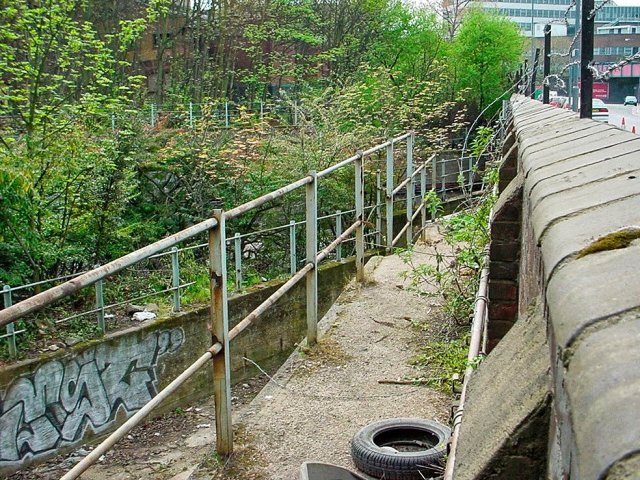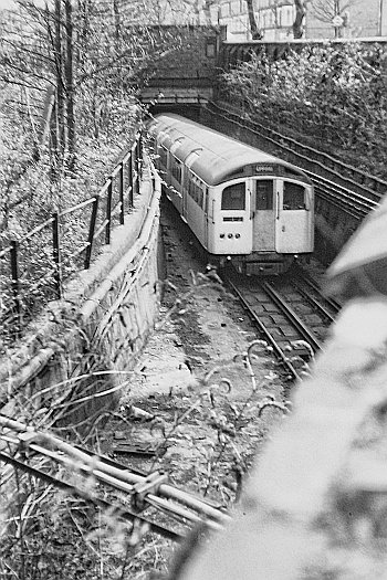 Peering over a wall trains could be seen heading south. The loop joined at left. Compare with that below.