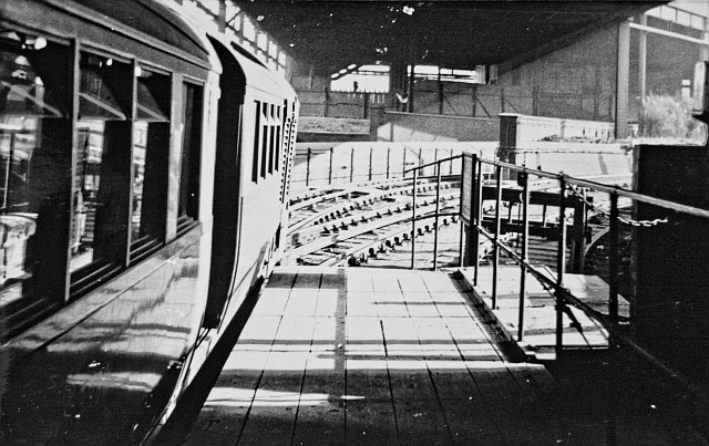 At this very spot (middle of picture) was a moveable platform. This accommodated longer trains in use from 1928, plus it could be moved to allow trains to access the depot.