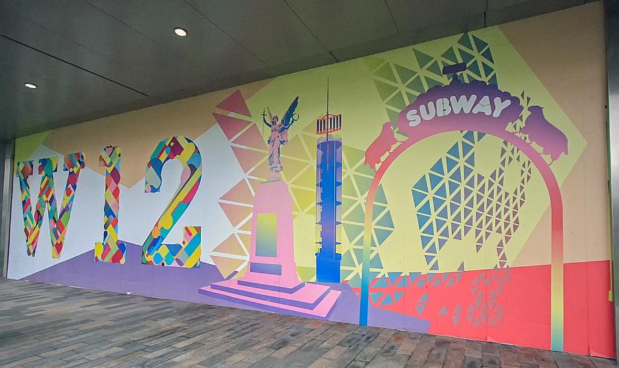If one walks to the other side of the Westfield building (next to One Ariel Way) currently there is this vacant shop frontage. Its quite ironic, I dont know if its a deliberate intention, however the ‘subway’ sign is almost exactly over the below ground alignment of the Central Line!