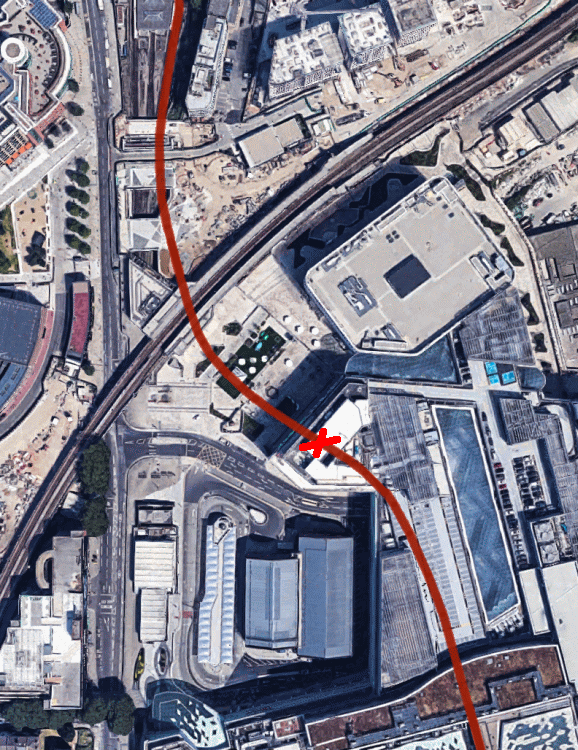 In the image below, which I took, I tried to show the 1947 tunnel entrance in relation to Westfield itself. Its evident there’s quite a tight alignment here as the line has to come across from Westfield’s and then straight underneath Wood Lane station before emerging to meet the tracks leading into White City station itself.