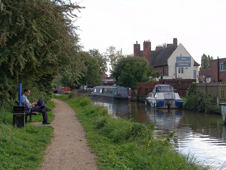 The canal passes Judd Lane bridge and Lady Lane footbridge, as well as crossing the River Sowe on a minor aqueduct, before reaching Longford bridge, where there was once a junction with the Oxford Canal. Both Coventry and Oxford canals’ rivalry meant that they could not agree on a more convenient junction, so the two canals ran parallel with each other for a mile from Hawkesbury to Longford. This state of affairs remained until they could agree on a connection at Hawkesbury.