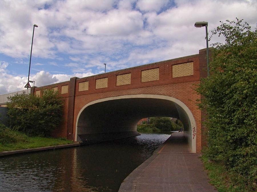 The other newer bridge on the Exhall straight. Its certainly longer than some of our shortest canal tunnels! This is Heath Crescent bridge and the reason for its large size is due to a roundabout.