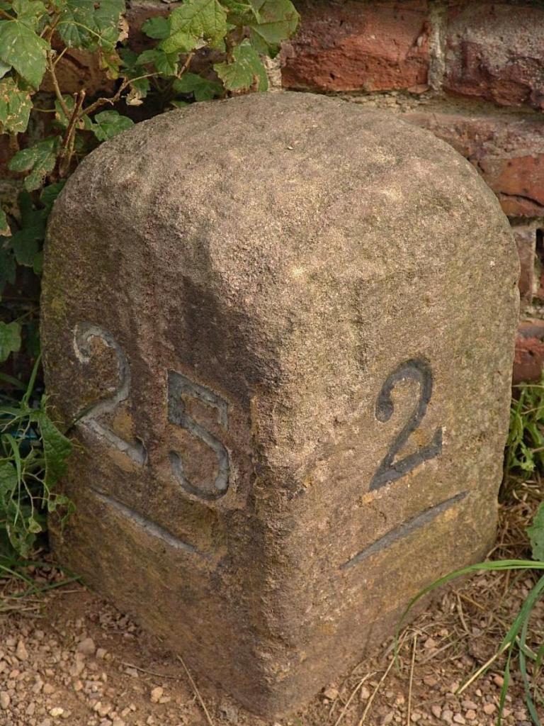 Original milestone near Swan Lane. The 25 miles denotes the distance to Fazeley Junction. One of the better examples of the various milestones along the canal.