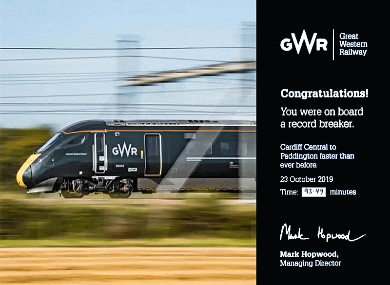 These faster train times came hot on the heels of some considerable record runs with GWR IET’s from Cardiff (93min) Bristol (72min), and Swindon (44min) to London that were made during 2019.