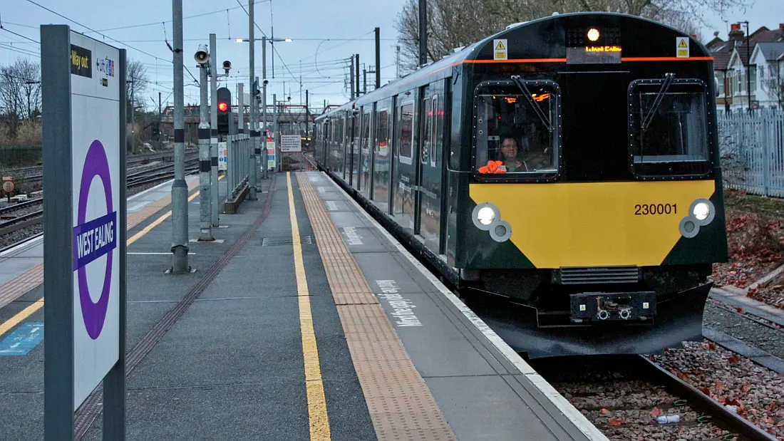 GWR’s battery train – the Class 230 – arrives at West Ealing approximately 08.11am on its first day of public service. London Rail/Author’s photo.