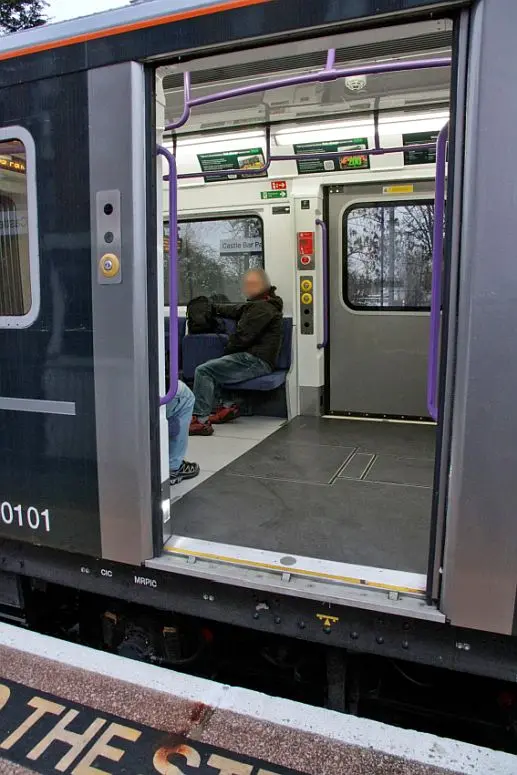 The Class 230 has an excellent interior which is most suitable for wheelchair users and also their companions. A lot of thought has been put into this and its commendable. The downside however is the Class 230 is somewhat on the high side when it comes to boarding and alighting. At Castle Bar Park however its almost like a chasm. Its easily worse than, for example, Clapham Junction.