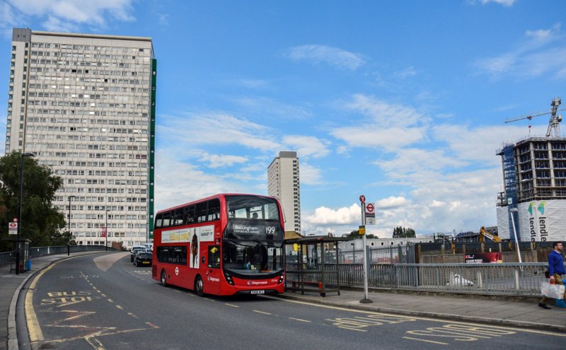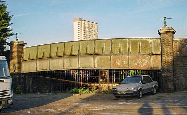 Blackhorse Road bridge (aka Evelyn Street) with Daubney Tower visible.