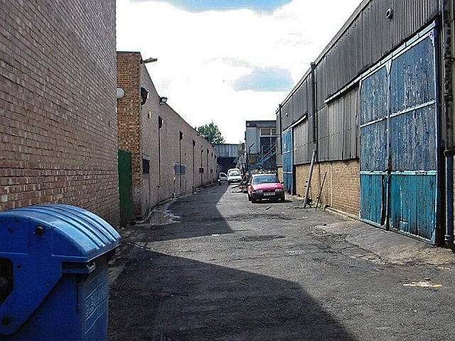 Canal Approach from the railway viaduct near Trundley’s Road.The canal itself once stood where the scrapped cars are.