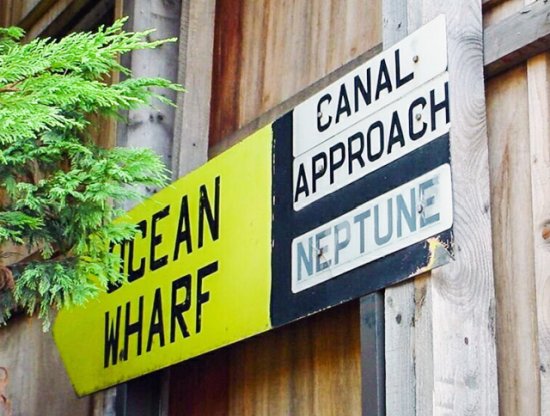 Sign denoting Canal Approach and Neptune/Ocean Wharves.