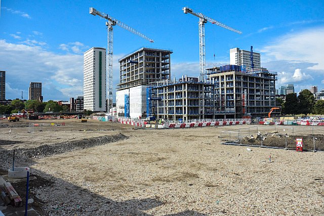 The works at Oxestalls Road to build the Timber Yard. Blackhorse Road bridge is in the middle distance.