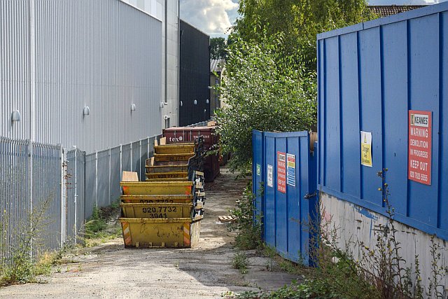 As mentioned above, part of the industrial estate along Canal Approach is being demolished for a new residential development. This picture (below) inside one of the old warehouses, a remnant of the old canal, is at Neptune’s Wharf.