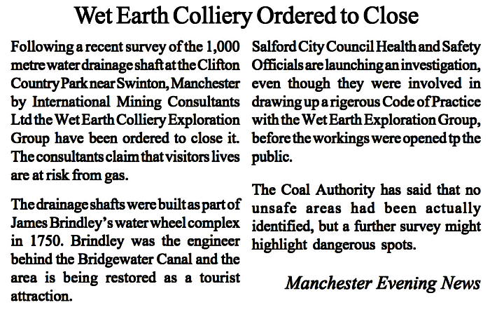 An article written by the Manchester newspaper in 1997 shows the council had ordered an end to the excavation works. Despite indications things would be able to continue after the council’s investigations had been conducted, no such thing happened. All the tunnels and entrances have now been sealed up. Some of these a special access was gained as can be seen in Martin Zero’s videos.