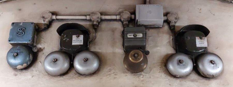 This series of bells on the wall at Hampstead tube station is a reminder of the railway’s need for an auditory medium.