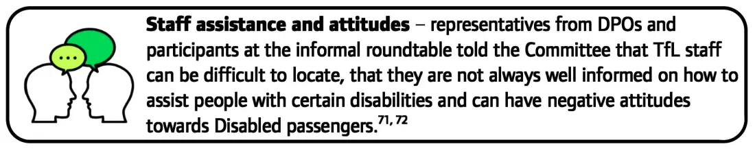 The London Assembly February 2026 report acknowledges that staff can have negative attitudes. Link.