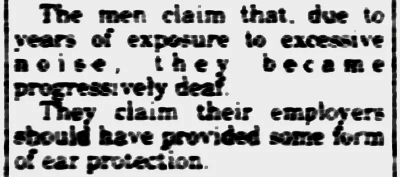 The men claim that, due to years of exposure to excessive noise, they became progressively deaf. They claim their employers should have provided some form of ear protection.