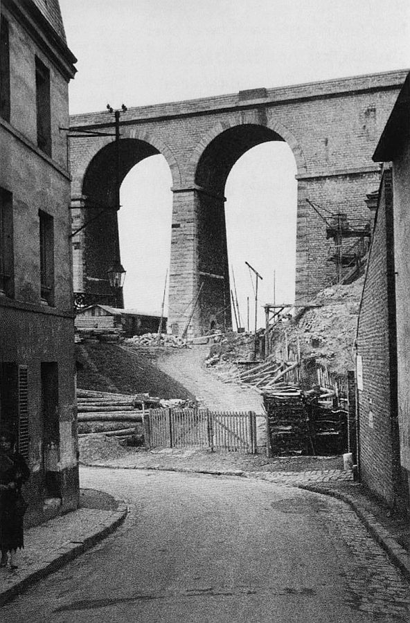 This view from Avenue Jean Jaures shows the point at which Kertész’s steam engine was pictured crossing the valley. Below that point is the newer viaduct. If one looks carefully at Kertész’s picture, this lower viaduct can be seen under construction.