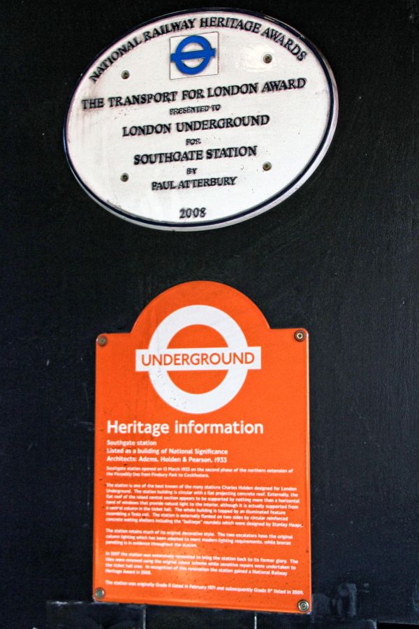 Heritage information and TfL award plaque (2008).