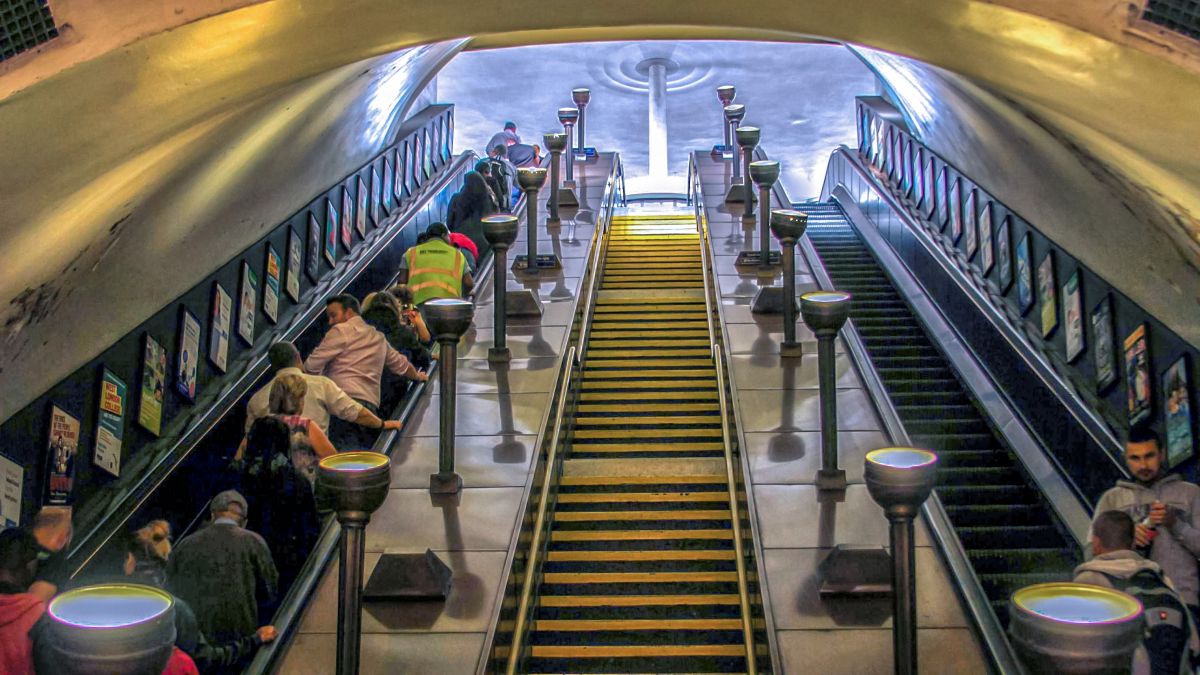 Like Bounds Green, Southgate has two escalators with a fixed central staircase. Both had three operational escalators when originally built. The escalators at Southgate are the most northernmost ones to be found on London’s tube system.