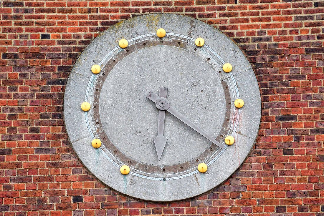 A substantially detailed view of the bus station clock.
