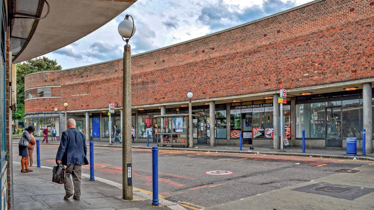 The station buildings are Grade II* listed (having been upgraded from Grade II in 2009.) The areas immediately outside the station have seen the original landscaping layout from the 1930s partially restored. Despite being built at the same time, the bus station and shopping parades are not currently listed although the council proposes this be changed.