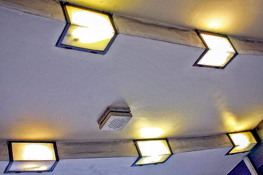 A different style of lamp shade in the Parade. These were quite numerous when the station was first built. These examples are a variant on the ones that were first used on the Piccadilly line extension in the 1930s. Those ones gave the station platforms a very unique and modern appearance. Like all other things these were removed during WWII and the station platforms are now lit in the far more traditional ways.