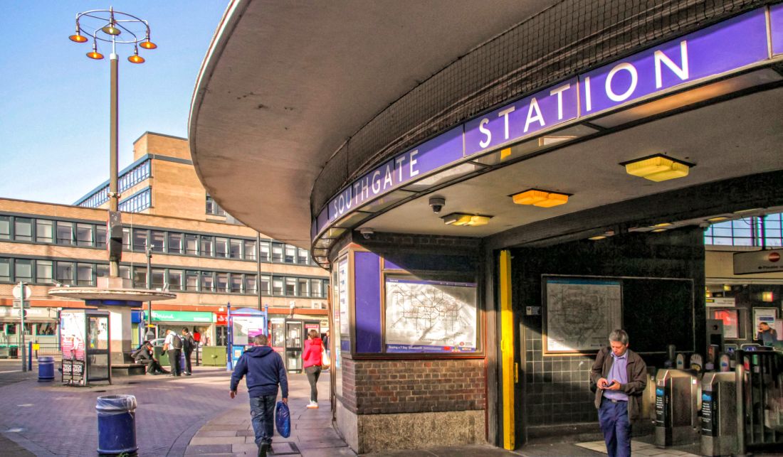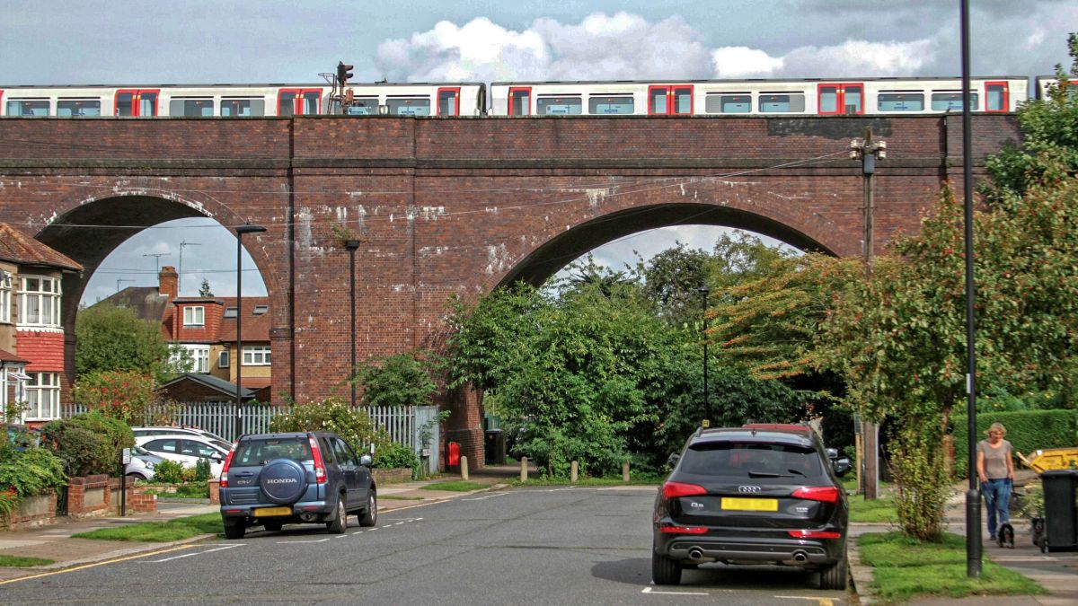 The substantial Southgate viaduct extends for a good distance north of the station.