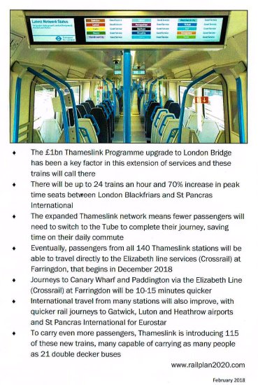 All the new services are the Class 700’s 12 coach trains totalling 242metres (795ft.)These are longer than those for Crossrail which are just 200 metres (660ft.) Some Thameslink routes starting with the full timetable in May will however use just the eight coach trains.