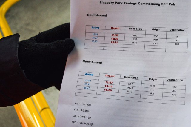 A glimpse of the staff’s special train timetable for the new Thameslink services.