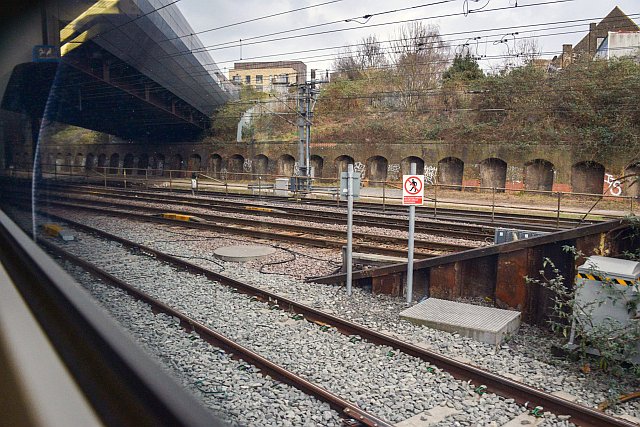 Rounding the curve from the East Coast main lines towards the Canal Tunnels.